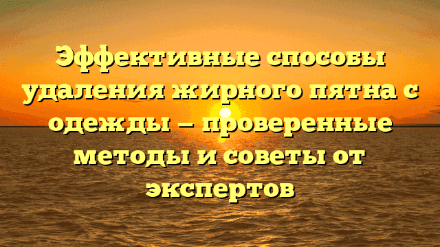 Узнайте, как эффективно и без стресса удалить жирные пятна с вашей одежды с помощью проверенных и простых домашних методов, чтобы ваша одежда всегда выглядела безупречно.